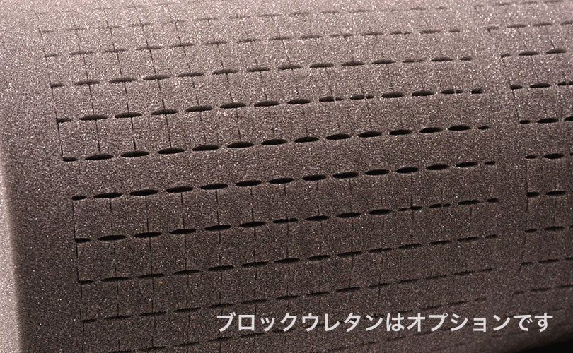 内装用ブロック(オプション)ウレタン。15mm角の切り込みが入っているので、収納物の形状に合わせ、ちぎり取るだけで簡単に加工できます。